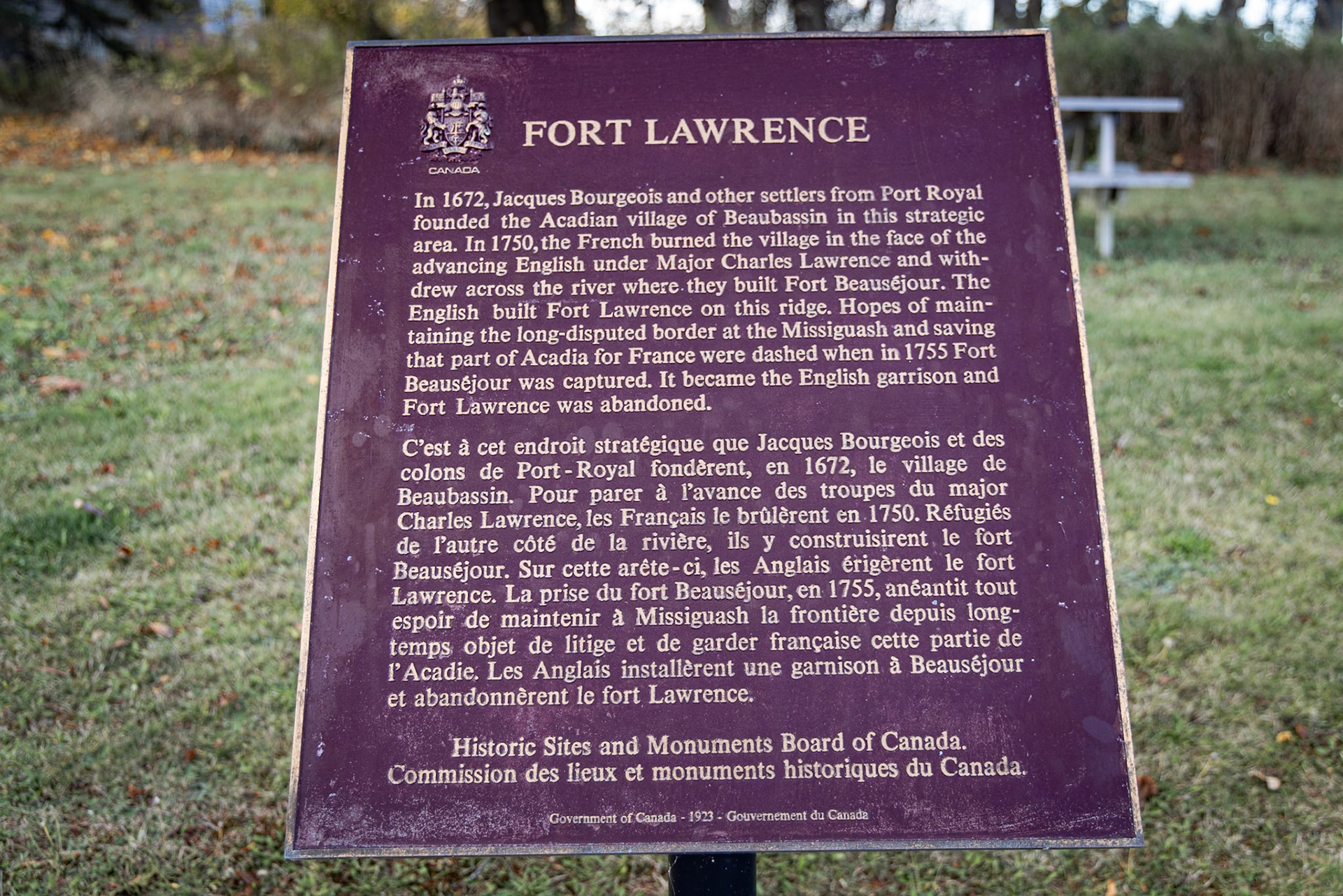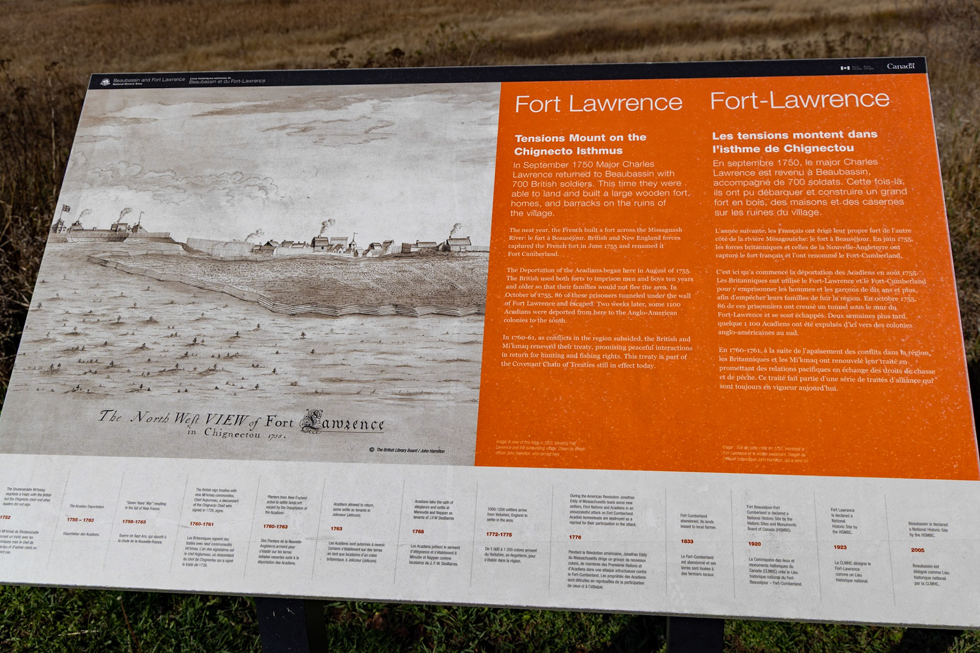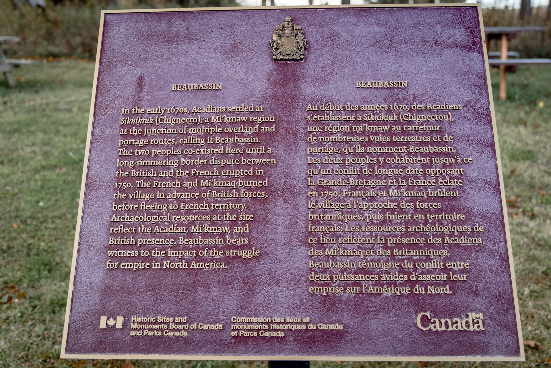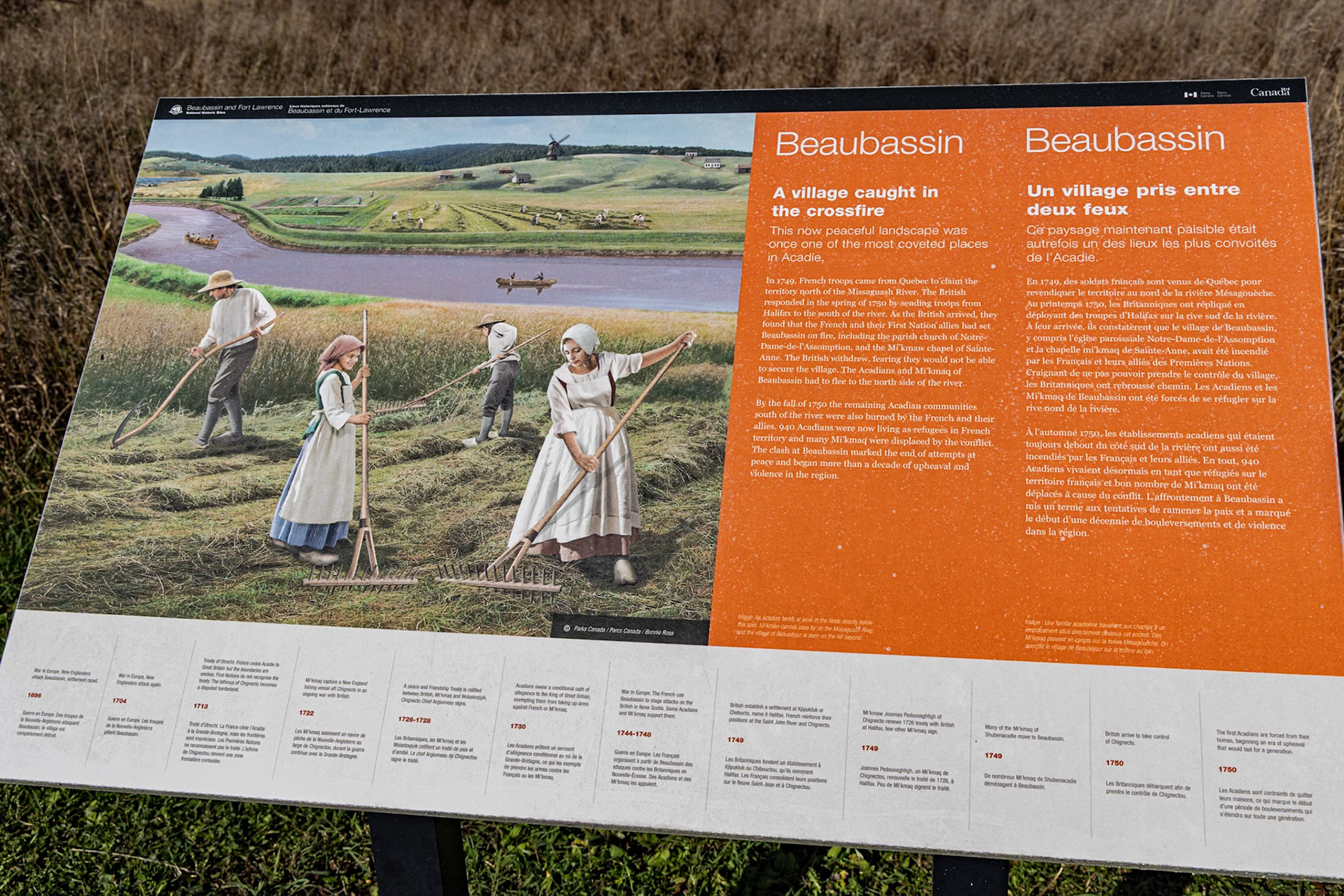 Situées sur la frontière actuelle entre le Nouveau Brunswick et la Nouvelle Écosse, les marais de Beaubassin étaient les terres les plus convoitées en Acadie. Abritant des nombreux villages acadiens, les Britanniques sont arrivés en 1750, bien décidés à s'en emparer. Incapables de repousser les avances britanniques, l'armée française et ses alliés autochtones incendieraient les villages acadiens avant de se replier au Nouveau Brunswick, Île du Prince Édouard, et Québec. L'incendie de Beaubassin fut l'un des premiers événements qui menèrent à la Guerre de Sept Ans et au Grand Dérangement - la déportation massive des Acadiens vers la France.