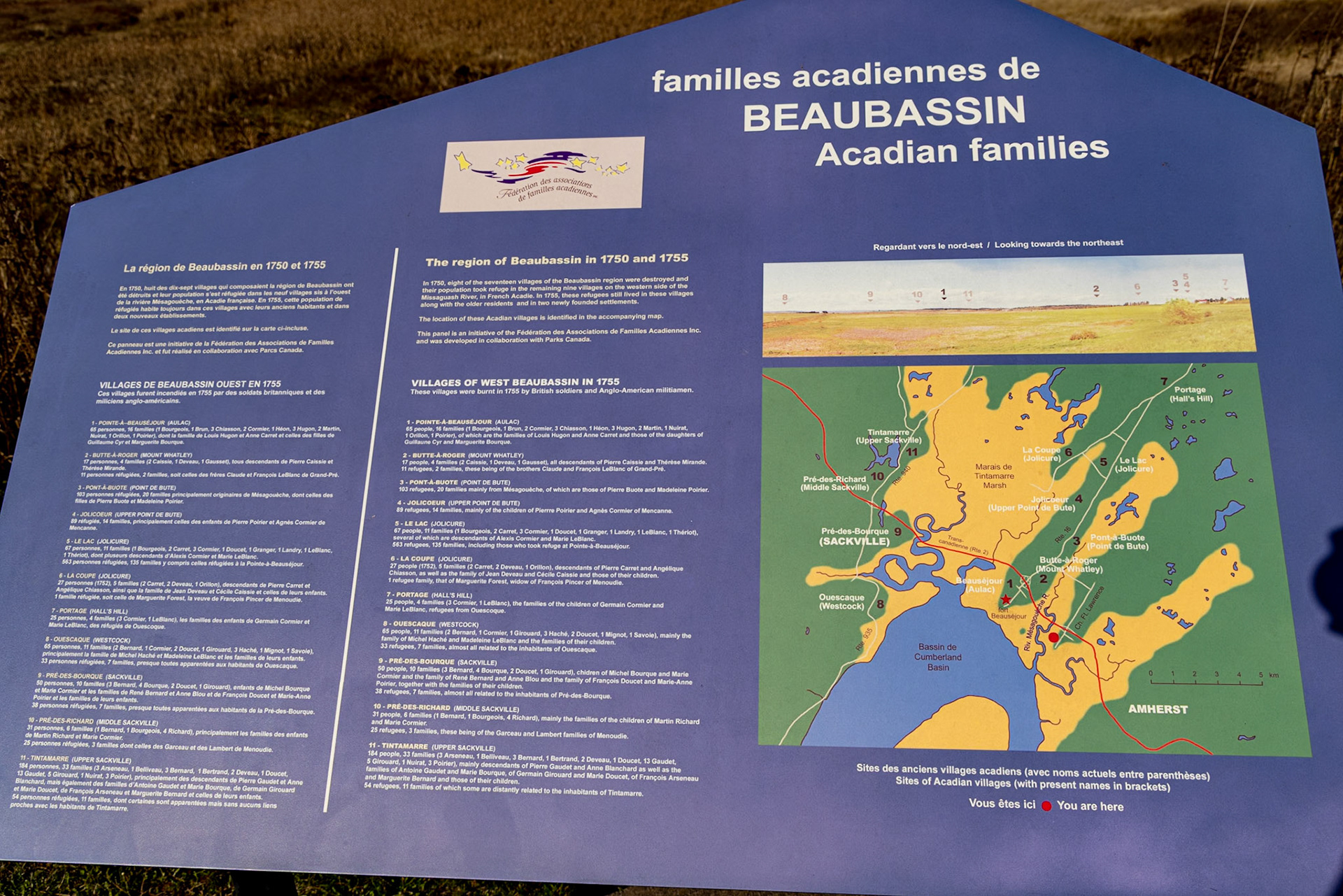 Sitting on the present-day border between New Brunswick and Nova Scotia, the marshlands of Beaubassin were the most coveted land in Acadie. Home to numerous Acadian villages, the British arrived in 1750 hungry to capture Beaubassin for themselves. Unable to stop the British advances, the French army and their Native American allies burned the Acadian villages to the ground before fleeing deeper into New Brunswick, Prince Edward Island, and Québec. The burning of Beaubassin was one of the first steps that ultimately led to the Seven Years' War and Le Grand Dérangement - the mass deportation of Acadians to France.