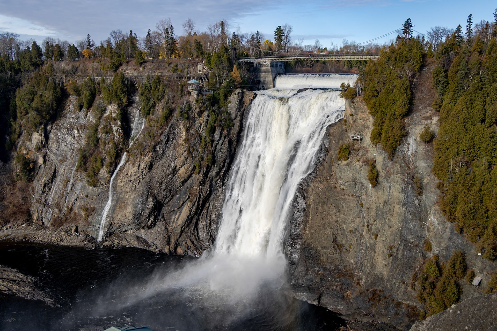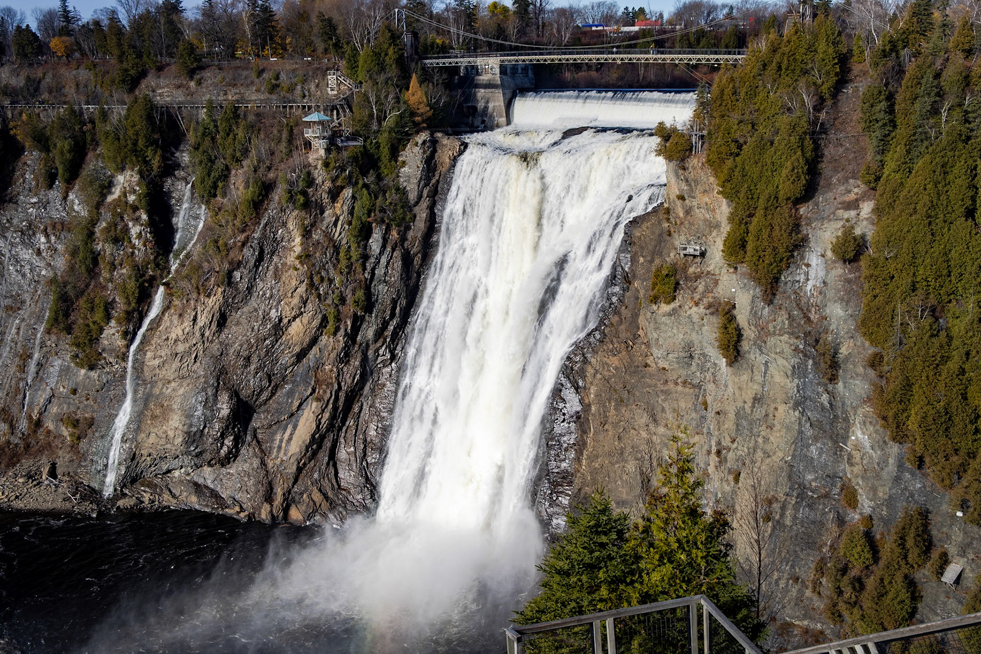 Plus haute de 30 mètres que les Chutes du Niagara, la Chute Montmorency se trouve seulement 15 courtes minutes du Vieux Québec. Dans le park, vous pouvez faire une randonnée vers le haut, par-dessus, autour, et vers le bas pour photographier cette merveille naturelle de tous les angles et perspectives.